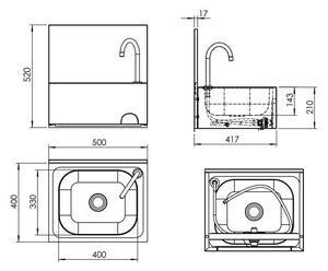 Battery Hand Sunday 500x400mm (Cold and Hot Water Link)