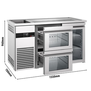 Beer counter premıum - 1550x700mm - 1 glass door and 2 glass drawers