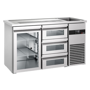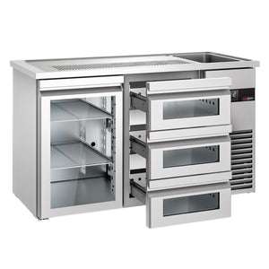 Beer counter premium - 1550x700mm- single glass door and 3 glass drawers