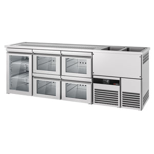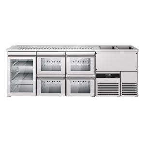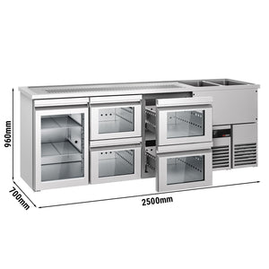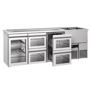 Beer counter premium - 2500x700mm - 1 glass door & 4 glass drawers