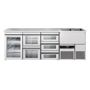 Beer counter premium - 2500x700mm- 1 glass door with 1 glass drawer