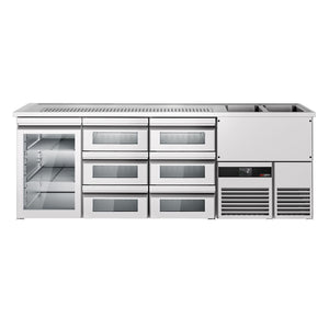 Beer counter premium - 2500x700mm- 1 glass door & 6 glass drawers