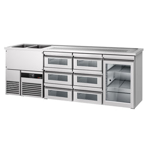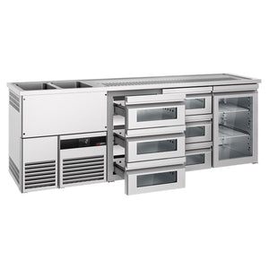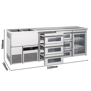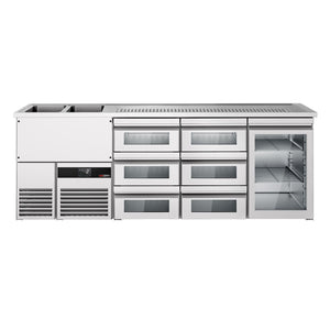 Beer counter premium - 2500x700mm- 1 glass door & 6 glass drawers