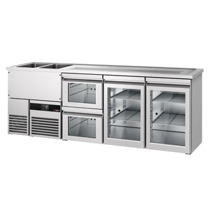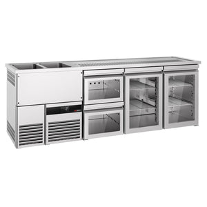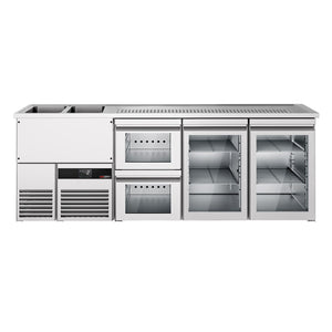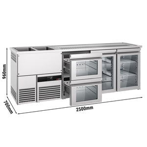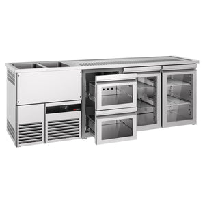 Beer counter premium - 2500x700mm - 2 glass doors & 2 glass drawers