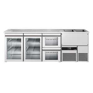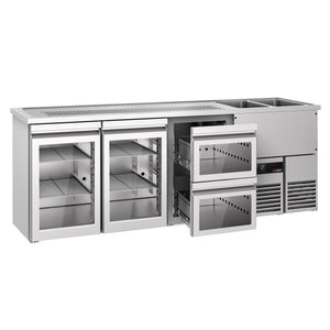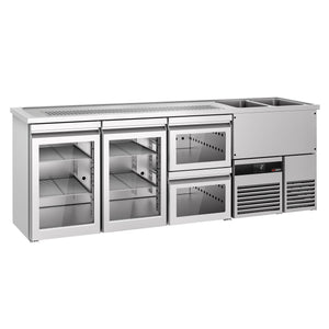 Beer counter premium - 2500x700mm - 2 glass doors & 2 glass drawers