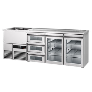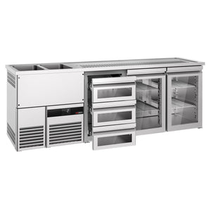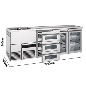 Beer counter premium - 2500x700mm- 2 glass doors & 3 glass drawers