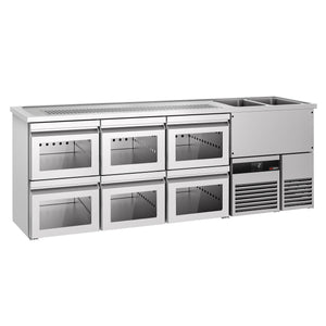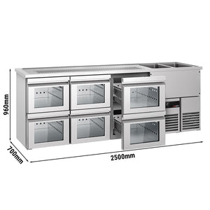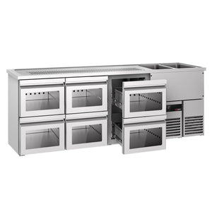 Beer counter premium - 2500x700mm - 6 glass drawers