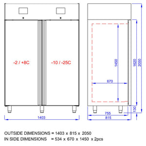 Refrigerator & Deep Freezer Combination PremIum - GN 2/1 - 1400 liters - 2 doors