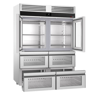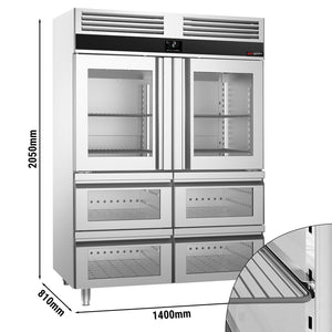 Refrigerator Premium - GN 2/1 - 1400 liters - 2 half glass doors & 4 glass drawers