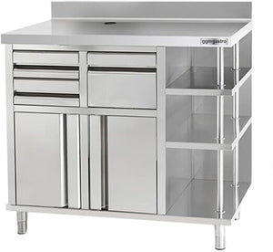 Commercial Stainless Steel Coffee Workbench with Drawers and Shelves | Kitchen Counter for Restaurant Hotels with Drawers with Telve Bucket (39.3x23.6x45.2 Inch)