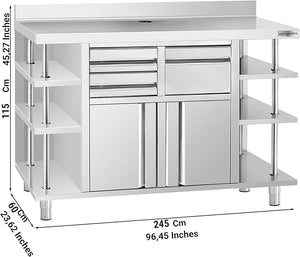 Commercial Stainless Steel Coffee Workbench with Drawers and Shelves | Kitchen Counter for Restaurant Hotels with Drawers with Telve Bucket (96.4x23.6x45.2 Inch)