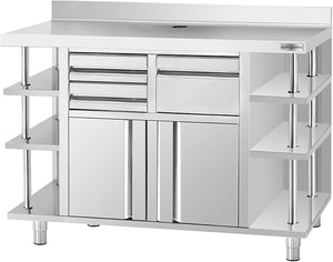 - Versatile and Stylish Design: Designed to fit seamlessly into any commercial kitchen or coffee station, this workbench combines functionality with style. The sleek stainless steel finish not only looks professional but also complements any decor. Whether you're setting up in a restaurant, hotel, or coffee shop, this versatile workbench will enhance your coffee-making process and elevate the overall aesthetic of your space.