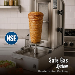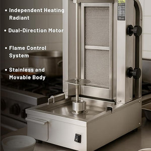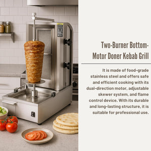 - High Meat Capacity – Ideal for Professional Use: This 2-burner gas doner kebab machine is designed for heavy-duty commercial use with a maximum capacity of 15 kg of meat. It ensures even cooking for large portions, making it perfect for busy restaurant kitchens, kebab shops, and catering businesses. Handle bulk orders efficiently without compromising on quality or taste.
