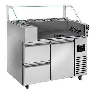 Preparation counter - 1210mm - 9x GN 1/6- 1 door & 2 drawers