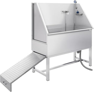 Pet Grooming Tub with Stainless Steel Sink with Faucet | Dogs and Pets Washing Station | Home and Outdoor Dog Bath Tub with Shower Hose and Sink for Pet Bathing (Ramp)