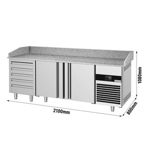 Pizza Preparation counter premium - 2100x800mm - 3 doors & 6 drawers