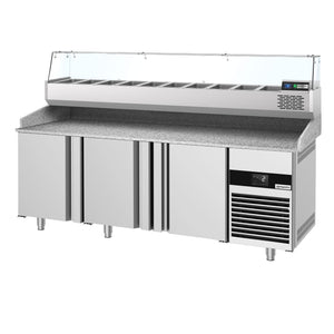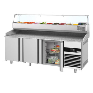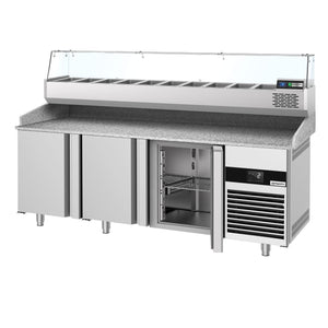 Pizza Preparation counter premium - 2100x800mm - 3 doors - Included cooled showcase - 10x GN 1/3