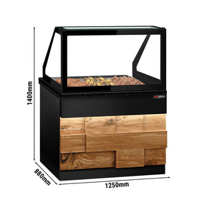 Hot Holding Showcase Toronto - 1250mm - Wooden Front Panel - For 3x GN 1/1- Black Granite Working Call