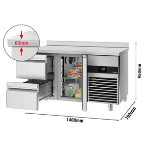Cooling counter premium - 1400x700mm - 1 door & 2 drawers & backs