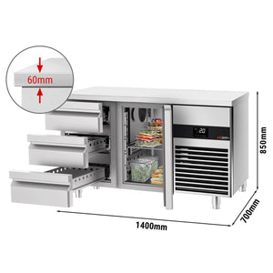 Cooled counter premium - 1400x700mm - 1 door & 3 drawers