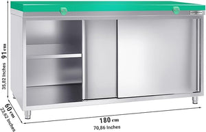 - VERSATILE STORAGE OPTIONS: Featuring sliding doors, this worktable offers versatile storage solutions for organizing kitchen essentials such as utensils, cookware, and ingredients, ensuring easy access and efficient organization to enhance culinary operations and optimize kitchen functionality.