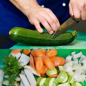 Stainless Steel Green Prep Table Sliding Doors - Polyethylene Table Top