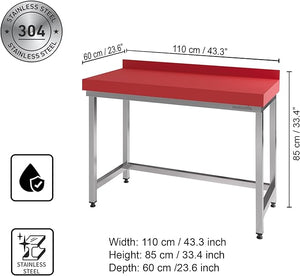 Stainless Steel Prep Table - Polyethylene Table Top - Commercial Kitchen Work Table with Backsplash - Heavy Duty Commercial Work Station for Restaurant, Hotel (43.3x23.6x33.4 inches)