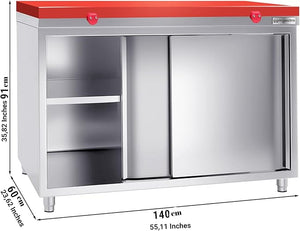 - VERSATILE STORAGE OPTIONS: Featuring sliding doors, this worktable offers versatile storage solutions for organizing kitchen essentials such as utensils, cookware, and ingredients, ensuring easy access and efficient organization to enhance culinary operations and optimize kitchen functionality.