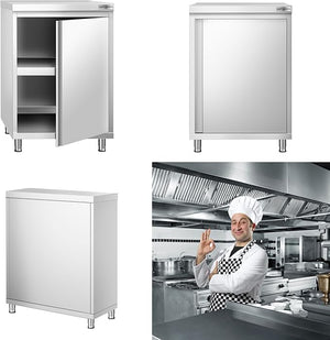 - VERSATILE STORAGE OPTIONS: With the inclusion of doors, this worktable offers versatile storage solutions for organizing kitchen essentials such as utensils, cookware, and ingredients, ensuring easy access and efficient organization to enhance culinary operations.