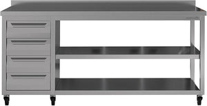 - VERSATILE STORAGE OPTIONS: Featuring drawers and an under shelf, this worktable offers versatile storage solutions for organizing kitchen essentials such as utensils, cookware, and ingredients, ensuring easy access and efficient organization to enhance culinary operations and optimize kitchen functionality.