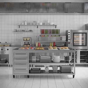 - PREMIUM 304 STAINLESS STEEL CONSTRUCTION: Engineered from heavy-duty 304 stainless steel, renowned for its exceptional durability, corrosion resistance, and hygiene properties, ensuring the worktable withstands the demanding conditions of commercial kitchen environments for long-term use without compromising quality.