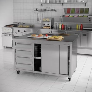- VERSATILE STORAGE OPTIONS: Featuring drawers and sliding doors, this worktable offers versatile storage solutions for organizing kitchen essentials such as utensils, cookware, and ingredients, ensuring easy access and efficient organization to enhance culinary operations and optimize kitchen functionality.