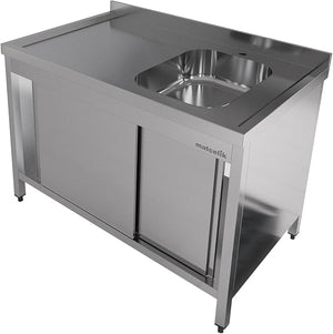 Stainless Steel Prep Table with Sink and Sliding Doors - Commercial Kitchen Work Table with Backsplash - Heavy Duty Commercial Work Station for Restaurant, Hotel (Right Sided Sink)