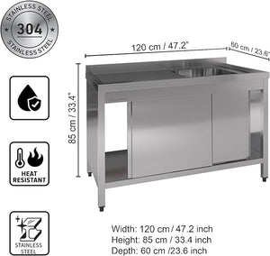 - EFFORTLESS ACCESS WITH SLIDING DOORS: Incorporates smooth gliding sliding doors, allowing easy access to storage compartments beneath the worktable, facilitating quick retrieval of supplies, tools, and equipment while maintaining an organized and clutter-free kitchen environment for enhanced efficiency.