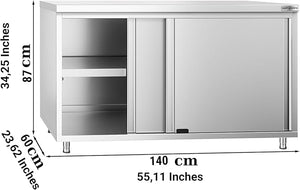 - VERSATILE STORAGE OPTIONS: With the inclusion of sliding doors, this worktable offers versatile storage solutions for organizing kitchen essentials such as utensils, cookware, and ingredients, ensuring easy access and efficient organization to enhance culinary operations.