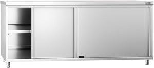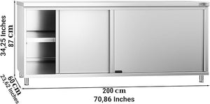 - VERSATILE STORAGE OPTIONS: With the inclusion of sliding doors, this worktable offers versatile storage solutions for organizing kitchen essentials such as utensils, cookware, and ingredients, ensuring easy access and efficient organization to enhance culinary operations.