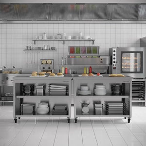 - VERSATILE USAGE IN COMMERCIAL KITCHEN SETTINGS: Designed for use in various commercial kitchen environments, including restaurants, hotels, catering services, and food establishments, this worktable serves as an indispensable asset for chefs and kitchen staff, offering durability, functionality, and versatility to meet the demands of professional culinary operations.