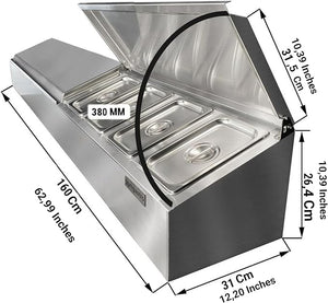 Stainless Steel Spice Rack Cabinet with Lid | 1/6 GN Organizer Shelf for Sauce Ingredients for Kitchen Pantry Use | Commercial Kitchen Restaurant Hotel Spices Cupboard (62.9x12.2x10.3 Inch - 8 GN)