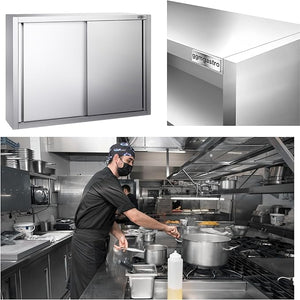 Stainless Steel Wall Cabinet with Sliding Door for Commercial Kitchen (31.4x15.7x39.3 Inch)