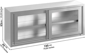 Wall Cabinet with Glass Door for Commercial Kitchen (70.8x15.7x25.5 Inch)